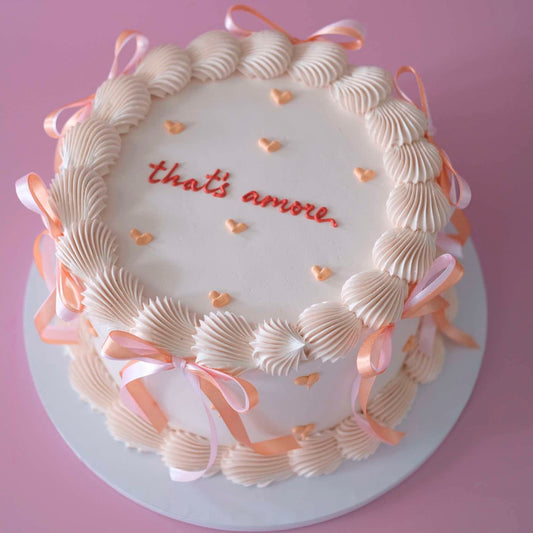 Two-Tone Ribbon Round Vintage Cake | Mini Hearts