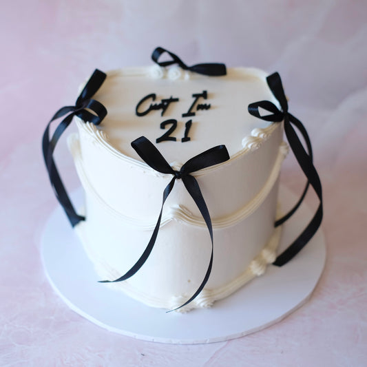 Double Ruffle Vintage Heart Coquette Cake | Monochrome